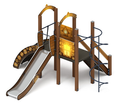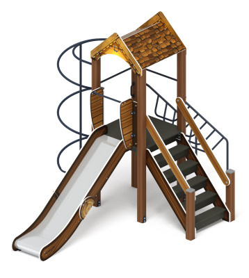 1 | Башня | выполнены из четырёх клеёных брусьев 100х100 мм высота 2500 мм, брус окрашен в коричневый цвет. Пол из ламинированной фанеры, с антискользящим покрытием 1000х1000 мм, толщиной 18 мм кромки фанеры тщательно шлифованы. Над башней имеется двускатная крыша, по аркам из влагостойкой фанеры, габарит арок 1000х575х18 мм, скаты фанера влагостойкая, толщиной 12 мм, габарит 1000х580х12 мм. Ограждение башни двух видов - из влагостойкой фанеры и ограждающая перекладина из стальной трубы. Ограждение из влагостойкой фанеры толщиной 18 мм, крепятся к опорному брусу при помощи пластиковых уголков. Ограждение окрашено при помощи UF-принтера. Принт - в стиле Мультяшный город.Отметка пола башни от планировочной отм площадки 1200 мм | комплект | |