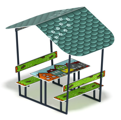 выполнен из профиля 30х30 мм и трубы диаметром 32 мм, металл имеет плавные радиусы, тщательную обработку швов, покрыт порошковой краской в графитовый цвет. Размер: 1200х1200х1000 |