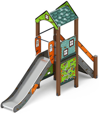2 | Горка | Скат горки шириной 530 мм, выполнен из нержавеющей стали t=1,5 мм - цельного листа, борта выполнены из влагостойкой фанеры толщиной 24 мм, кромки фанеры тщательно шлифованы, борта окрашены при помощи УФ печати, принт - в стиле «Эко». Опорный каркас горки выполнен из профиля 40х25 и труб диаметром 32 мм (металл имеет плавные радиусы и тщательную обработку швов, покрыт порошковой краской) Размер горки в плане 530х2270х1200 (h) | комплект | |