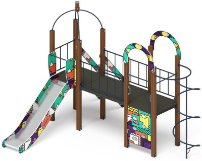 2 | Горка | Скат горки шириной 530 мм, выполнен из нержавеющей стали t=1,5 мм, - цельного листа, борта выполнены из влагостойкой фанеры толщиной 24 мм, кромки фанеры тщательно шлифованы, борта окрашены при помощи УФ печати, принт - в стиле «Техно-голубой»- основной цвет принта светло-серый. Ограждения стартового участка горки, выполнены из влагостойкой фанеры толщиной 18 мм. Опорный каркас горки выполнен из профиля 40х25 и труб диаметром 32 мм (металл имеет плавные радиусы и тщательную обработку швов, покрыт порошковой краской) Размер горки в плане 530х2270х1200 (h) | 1 | комплект |