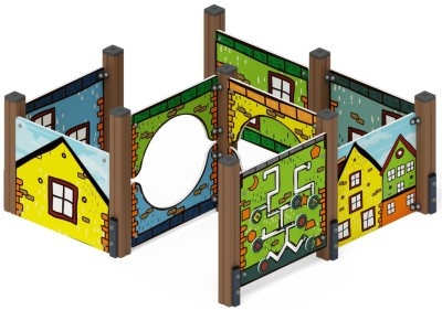 1 | Лабиринт | выполнен в виде сборной конструкции, которая состоит из 12-х стоек и 5-ти щитов с большим отверстием (отверстие 700 мм ), 1 щита ограждения, и 3-х заборчиков волна (разного размера). Одна секция лабиринта выполнена в виде домика с крышей, домик оснащен столиком под окном. Стойки выполнены из клееного бруса 100х100 мм, окрашенного в коричневый цвет, разной длинны. Щиты и заборчик выполнены из влагостойкой фанеры толщиной не менее 15 мм. Фанера окрашена в красный, синий, желтый, зеленый, красный и бежевый цвета. Лабиринт стилизован в морском дизайне. Имеется декоративная накладка на забор волна в виде дельфина | 1 | комплект |